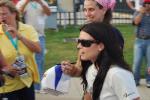 Denise in blue shirt with headphones Getting Danica's Autograph