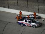 and eliminating both from the race. After being pushed back to her own pit, Patrick left her car and headed down pit road